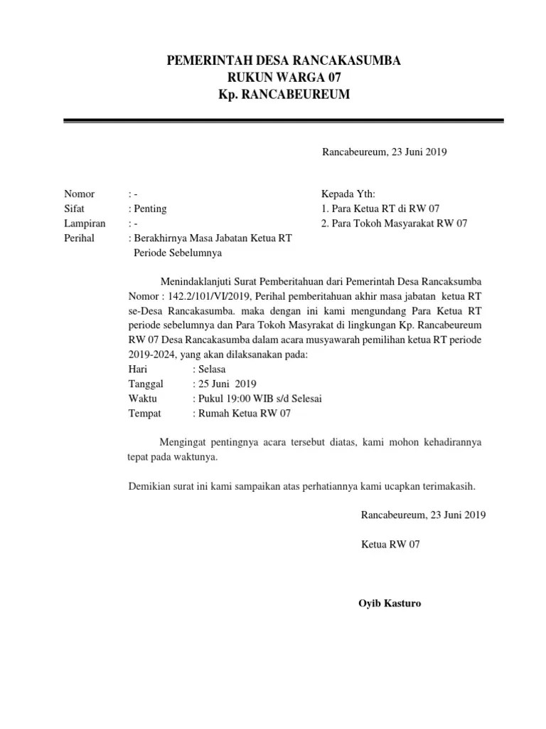 Hal yang membedakan karena keduanya memiliki struktur yang berbeda dan untuk keperluan yang tidak. Surat resmi biasanya digunakan untuk tujuan yang resmi, sementara surat tidak. Pilihan artikel yang anda cari Jika ada sedang mencari contoh surat undangan pemilihan rt word. Ketua rt dede kurnia sekretarisacep nurjaman.